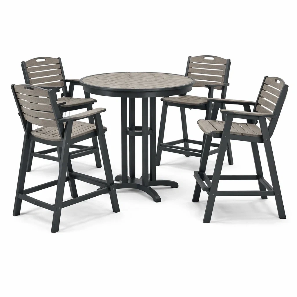 Ensemble de bar table et chaises de jardin en polybois et métal gris noir