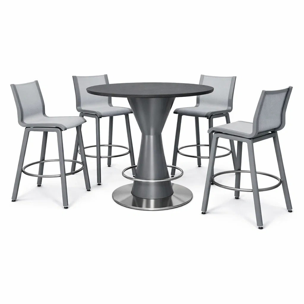 Ensemble de bar table ronde et 4 chaises en métal et tissu gris