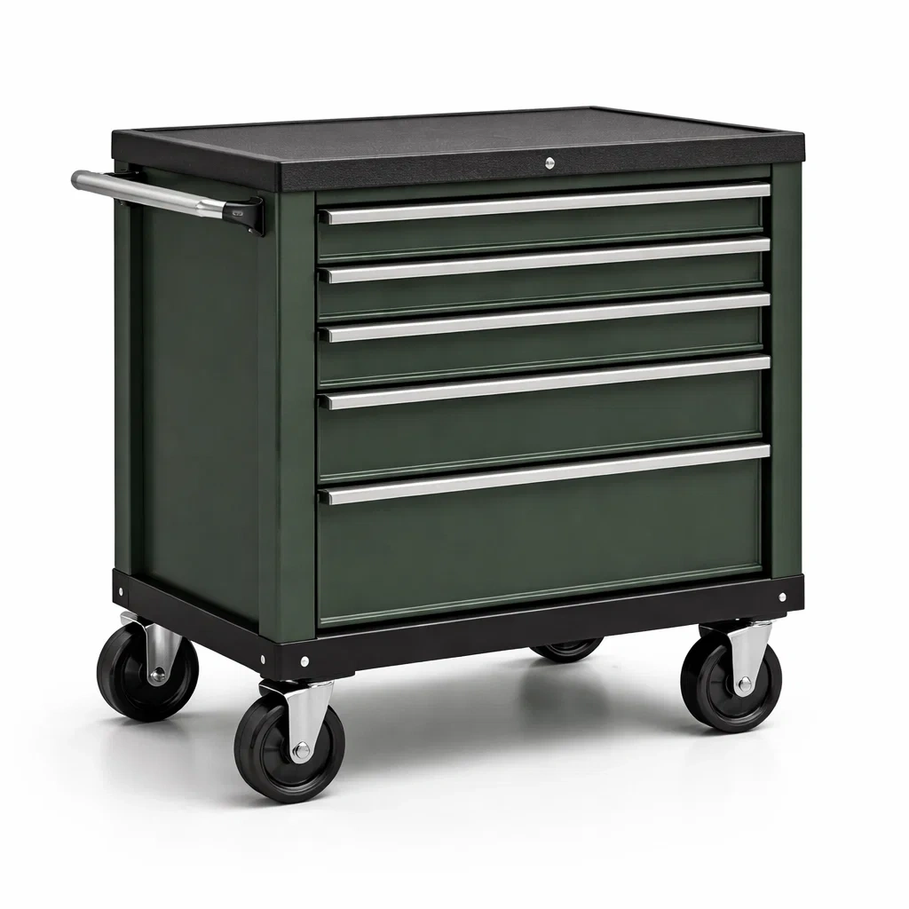 Chaise longue en métal avec 5 tiroirs et roulettes vert 70x58x90 cm